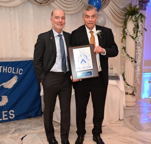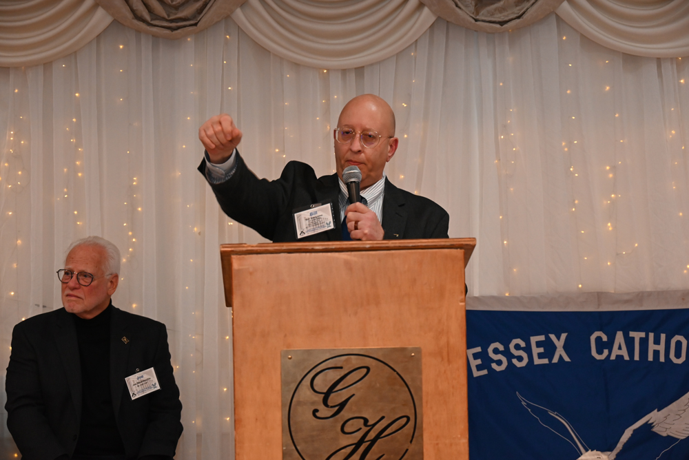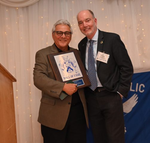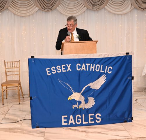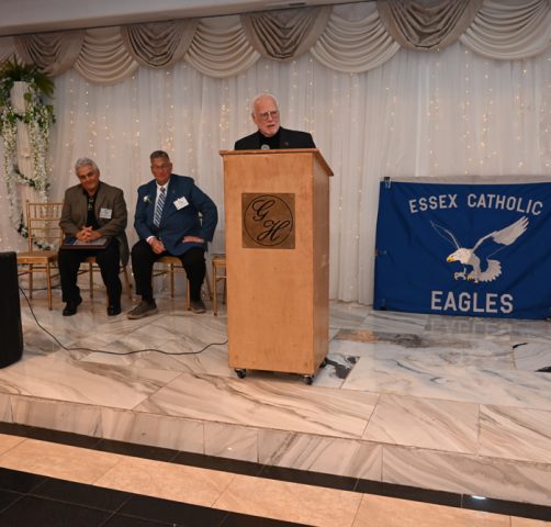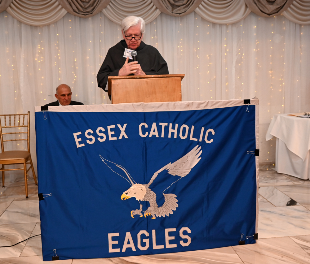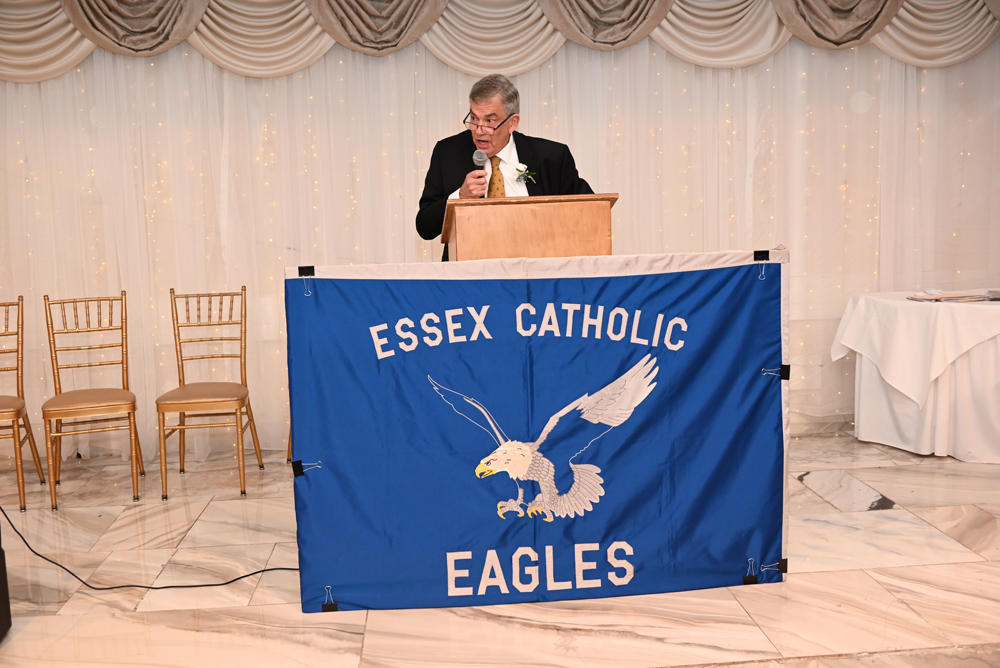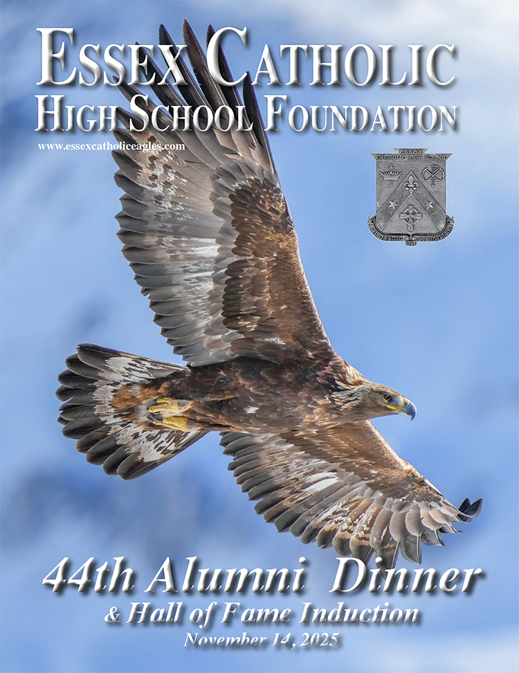 Essex Catholic High School alumni, teachers, coaches, family and friends gathered November 14, 2025 for the Foundation’s 44th Annual Alumni Dinner & Hall of Fame Induction. Honored were David Yacavone ’63 (Posthumously), Fr. Matthew Chadwick ’68, Jack Venezia ’68, Jude Del Preore ’69, John Reilly ’70, Frank Choppy ’71, John Dennis ’75, Bruno Giordano ’76, Greg Riel, Teacher/Coach (Posthumously). Long-time supporter Gil Lamphere received our inaugural Anthony Naclerio Award for Foundation Support. The 45th Annual Alumni Dinner & Hall of Fame Induction occurs Nov. 13, 2026. Mark your calendars!