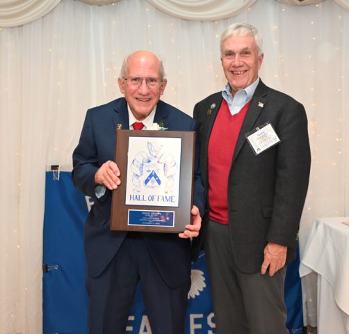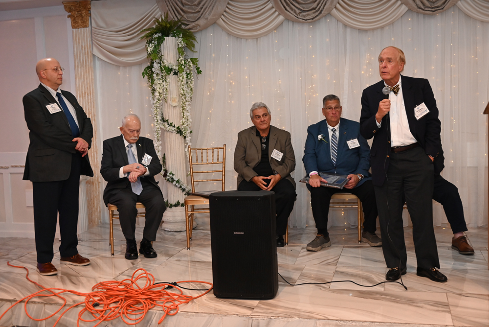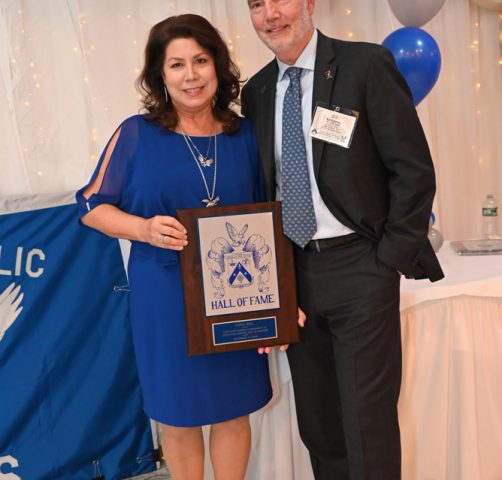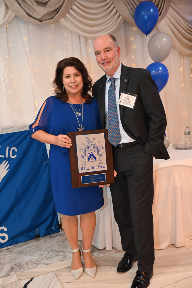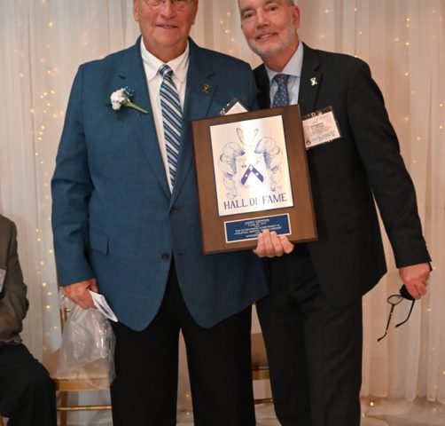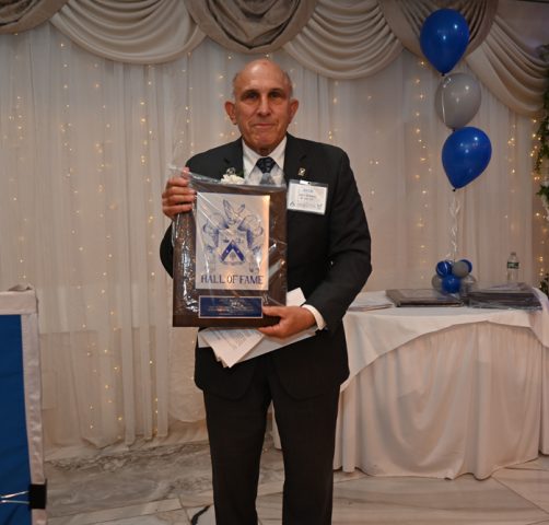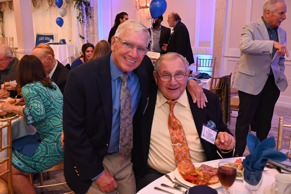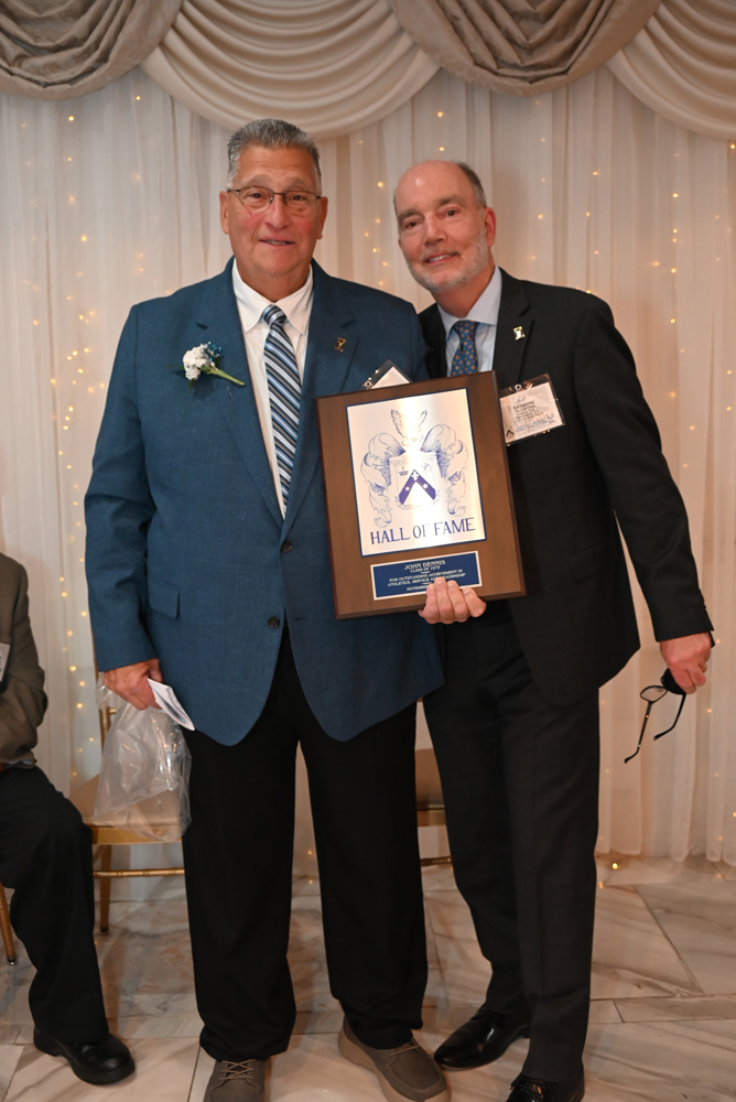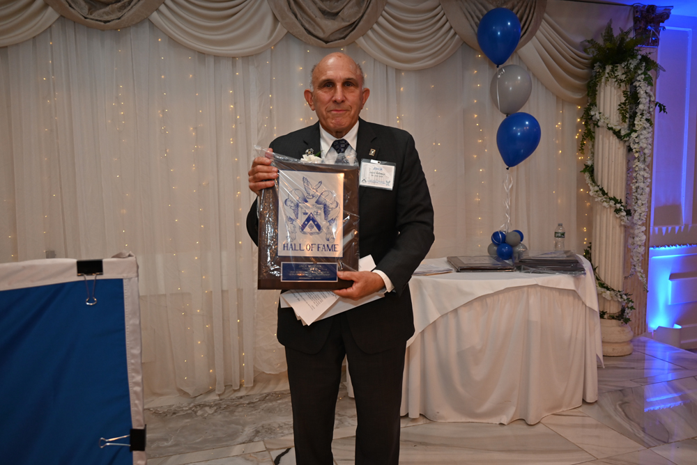 Essex Catholic High School alumni, teachers, coaches, family and friends gathered November 14, 2025 for the Foundation’s 44th Annual Alumni Dinner & Hall of Fame Induction. Honored were David Yacavone ’63 (Posthumously), Fr. Matthew Chadwick ’68, Jack Venezia ’68, Jude Del Preore ’69, John Reilly ’70, Frank Choppy ’71, John Dennis ’75, Bruno Giordano ’76, Greg Riel, Teacher/Coach (Posthumously). Long-time supporter Gil Lamphere received our inaugural Anthony Naclerio Award for Foundation Support. The 45th Annual Alumni Dinner & Hall of Fame Induction occurs Nov. 13, 2026. Mark your calendars!